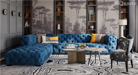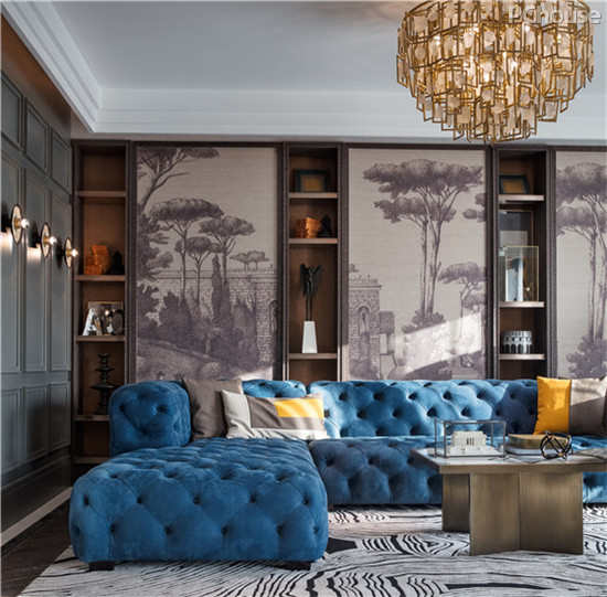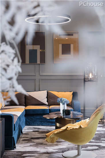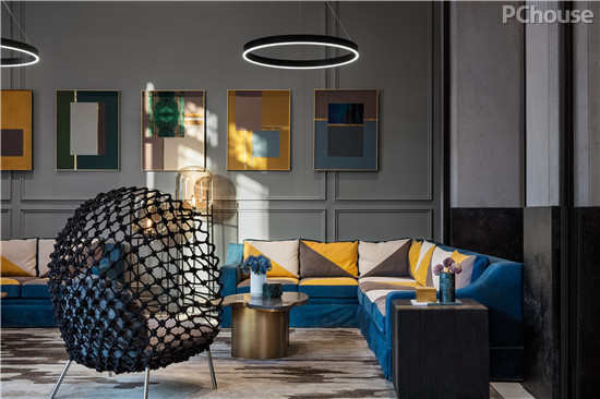 设计说明:设计师坚信,屈就于制式的复制内容无法振奋人心。明快的色彩、自然的线条和古典的曲线,通过视觉设计与材质的组合,与家具一起变成立体的空间布置,形成全新设计,营造时尚氛围。