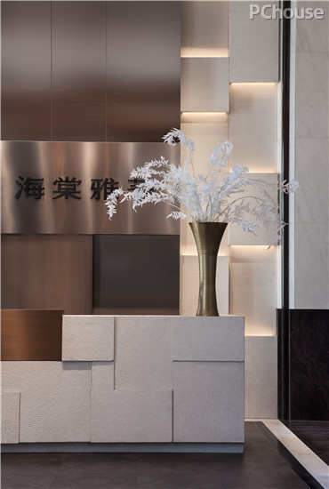 设计说明:实地海棠雅著室内和软装设计均由知名的布鲁盟室内设计操刀。布鲁盟深入项目方和市场人群的需求,以创造与革新为主题,探求中西文化融合,贯穿过去与当代设计风潮,结合材料创新、主题性和舒适度,重新定义古典和华丽,形成了一个当代艺术和人文风尚兼具的售楼处空间。