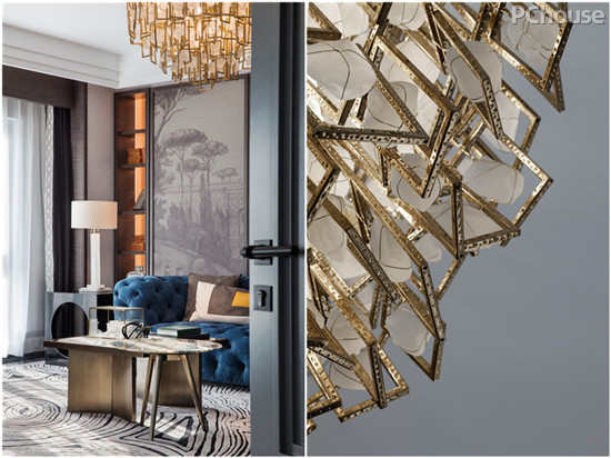 设计说明:空间中,睿智冷静的黑与尊贵丰饶的金成为主调。设计模糊东方与西方、古典与现代的边界,家具样式去除古典艺术的繁杂,却保留其精致,在对比例美感掌握的基底下,以古典时代的艺术成熟度,创造出丰富的场景和“新的华丽”面貌,形成夺目的艺术张力。
