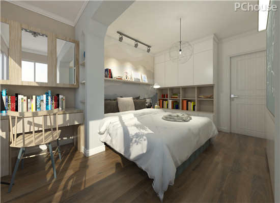 编辑点评:改造后的卧室,通过调转床的摆放方向,让空间动线更加合理,走廊上添置一排工作台,以满足在家工作的需求。同时,休闲区与睡眠区之间利用增设收纳柜进行分隔,柜子用立邦木器漆翻新上色,大色块的使用还丰富了空间的色彩。装饰画替代了之前的白墙,简约、温馨的空间,在满足预算的同时更符合现代年轻人的居家需求。