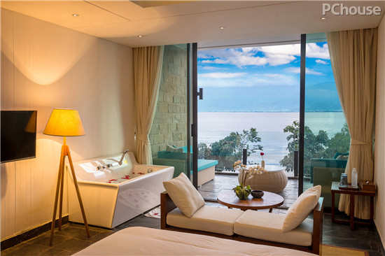 水舍共拥有12间客房,观海率100%,且独具匠心地设计了专属露台供客人卧躺观赏苍山洱海一番仙境,大浴池的置入更平添了几分蜜月的趣味。