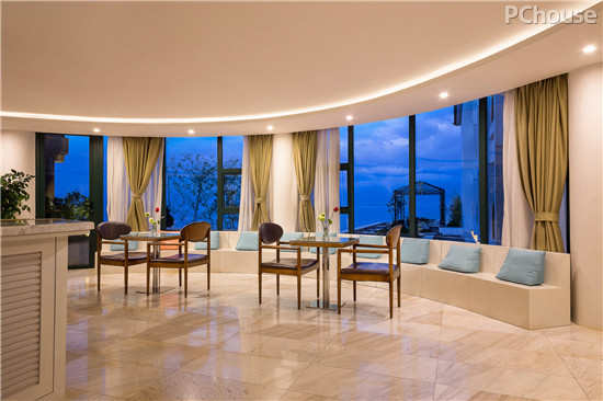 半岛酒店最大的特色在于其拥有大面积的观海公共区域,设计师关注人与人、人与自然之间的沟通,希望塑造一个双重的联系,使住客愿意走出狭窄私人空间,在最惬意的氛围中,来一场发自内心的交流。