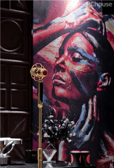 设计师在本案大堂的挑高空间中,采用了以金属丝网构建奥斯卡金像奖的造型,塑造成一个装置艺术品。形成一种独特的空间效果,极致的彰显空间气质和张力。