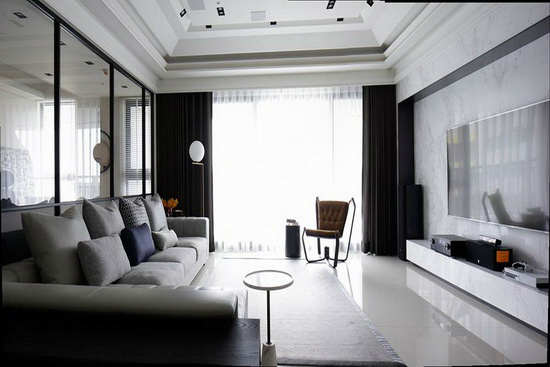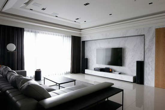 编辑点评:以大理石打造的电视墙,散发出素雅纹理,搭配黑色造型做框定,增加立体层次感。