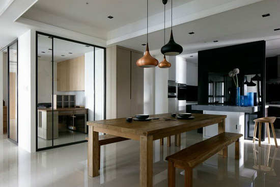 编辑点评:藉由玻璃引流窗外自然光,少了实体隔间墙的阻碍,光线成功汇流于室内自由穿梭,形成跃动的光影轨迹。