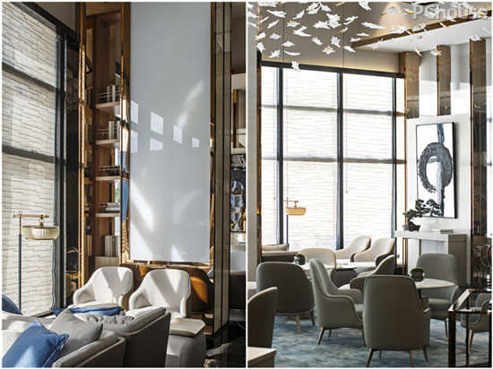 “聚水格”在中国有风水宝地之意,本案取其精华,结合现代人审美及生活方式,来诠释“财富”的第一层含义——物质基层。自然之聚,吸日月之精华,受天地之灵气,聚集自然界万物千姿百态;灵透之材,通过玻璃、透光石、金属等富有晶透、雅致的材质来增加空间灵性,营造水的意象。