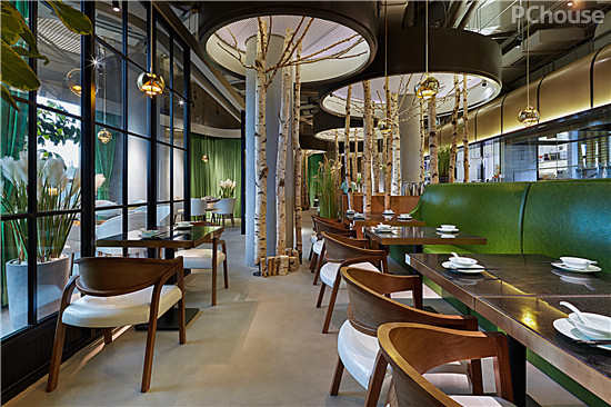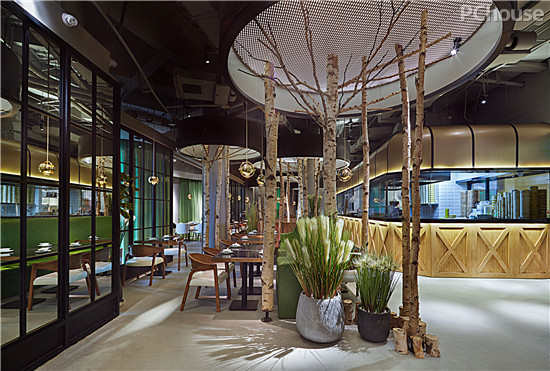 通过设计手法,完美地将大自然森林的自由不羁的放松氛围带入到300多平米的餐厅环境中。