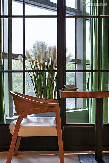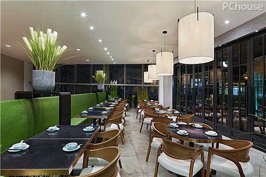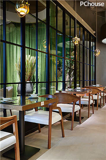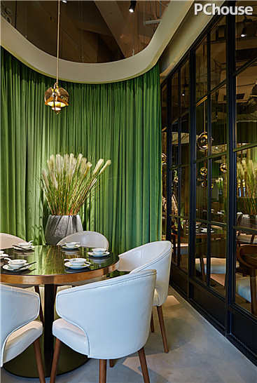 伴随着大自然最重要的颜色——草木绿色的窗帘、卡座皮革、植物作为空间点缀色,空间成为强有力的生命体,仿佛如同大自然般地清新起来了。
