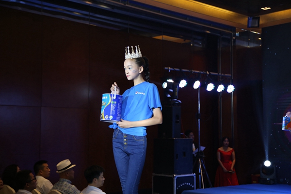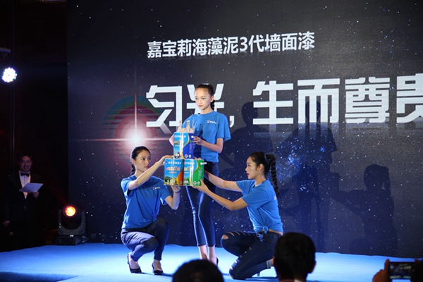 在产品上市启动仪式上,由来自嘉宝莉集团、温州经销商、美国UL公司等领导嘉宾共同上台,成功为产品揭幕,宣布了海藻泥3代墙面漆重磅升级,耀世登场!接踵而来的是高挑靓丽、风姿绰约的模特走秀,生动展示了海藻泥墙面漆系列由1代到3代的产品升级和技术演变,成为发布会上一道靓丽的风景线。