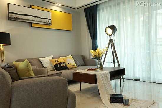 编辑点评:落地窗的设计,以便让更多的阳光照耀进来。为了弥补灰白色的冷清,设计师引入了原木色和黄色,再加上如电影场景一般的射灯,生活的节奏就这般慢下来了。