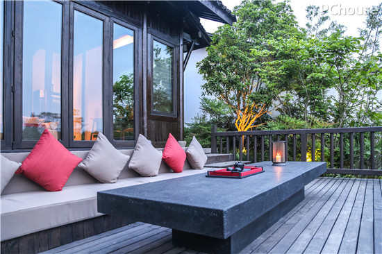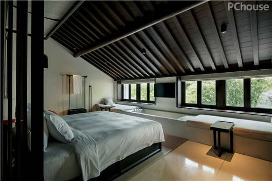 户外露台、汤池的无边界设计,让歇息的居者与西溪静逸水域更为相融。室内空间的序列,不设实体隔断,仅透过装饰自然过渡。