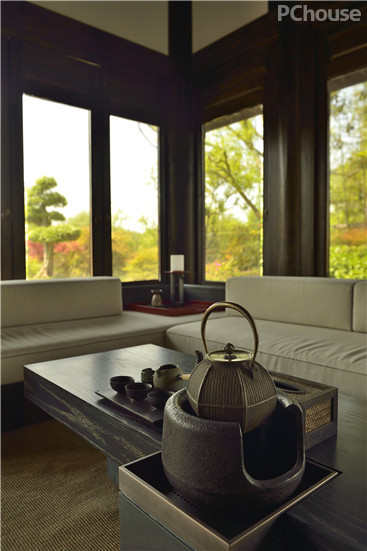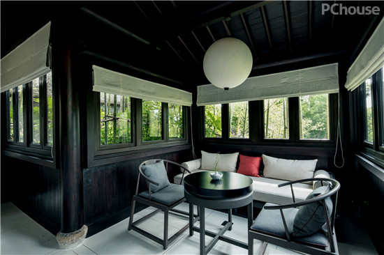 她在设计中,以大面积开窗面打破了建筑的闭合感。框架结构与明朗玻璃窗,将室外的水云天,与室内闲逸之心,融为一体。
