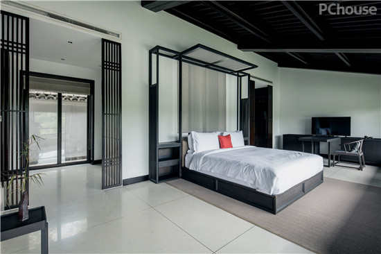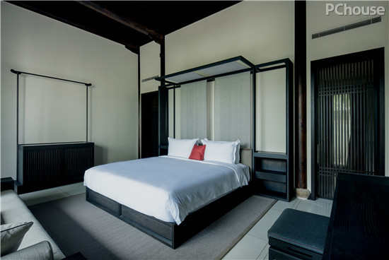 卡纳设计便以虚白与素朴的材质色彩,留下足以回味的余韵。中式的框架结构,方方正正的素描出雅致格局,利落切割的线条,半围合隔栅,形成通透明朗的气质,也自然的过渡了室内外空间。在空间的上与下,透过延伸的床幔遮盖,避免层高带来的虚浮,让居者安稳入梦。