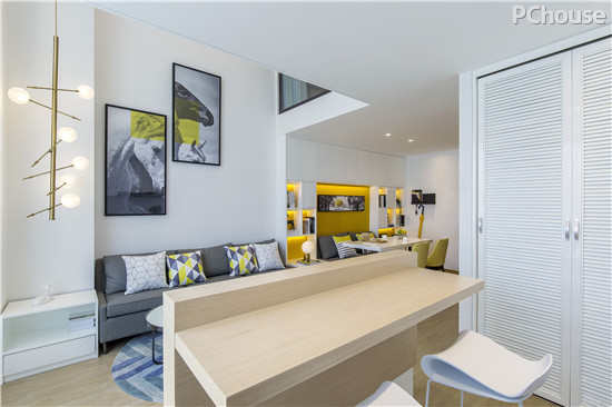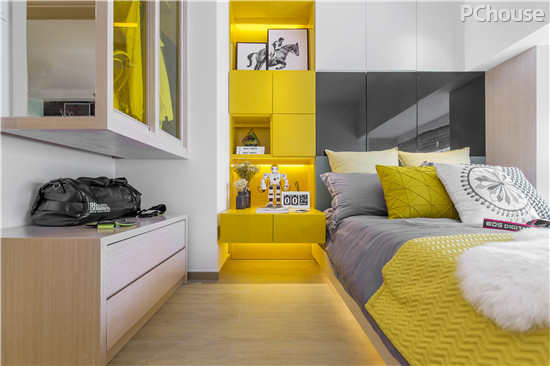 【太平洋家居网设计频道】总能够在人群之中轻易辨识出年轻人,不仅是因为他们那富有年轻活力的面庞,还因为他们的质感是摩登的、个性化的。适合年轻人居住的地方,应该拥有吻合他们质感特点的设计。本案的设计以明黄色和灰色为主色调,深浅颜色的交融,结合出明快而有活力的空间。