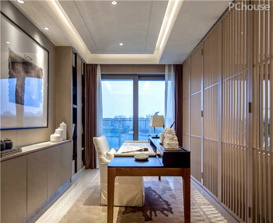 在软装材料上,运用自然的米灰色棉麻布料,有质感的布料肌理配合温润的木,带来温暖、禅意的东方味道。