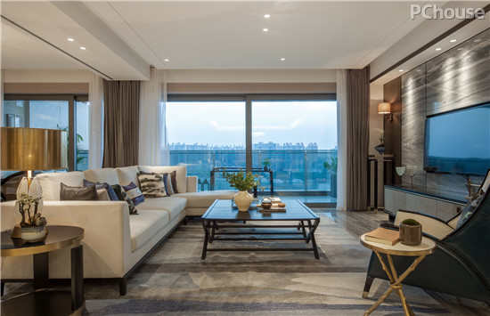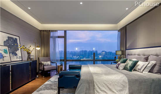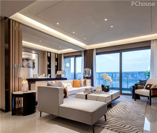 本案中的两套精装修样板间呈现高贵与典雅的空间气质,在精致简谱中跳出一种无法言喻的灵动。要把面对江景的这个面宽完全打开,形成一个大尺度的宽厅,豪宅的气度就能呈现出来。