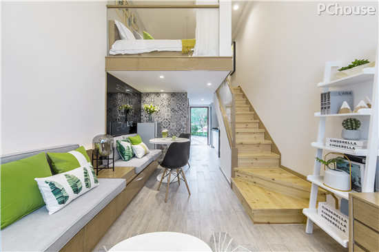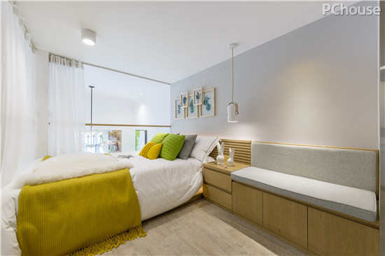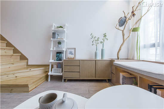在仅有的35平米中,空间收纳是其重中之重,从飘窗到榻榻米沙发,只要能想到的地方都塞满了柜子,使得杂物隐于无形,干净清新。