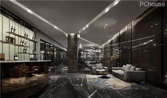 进入一层大堂,首先映入眼帘的是大堂咨客台。大胆肆意的灯带设计与光滑流畅质感的石材相映成辉,最终以一种当代性的时尚感与空间公共服务流线相协调。