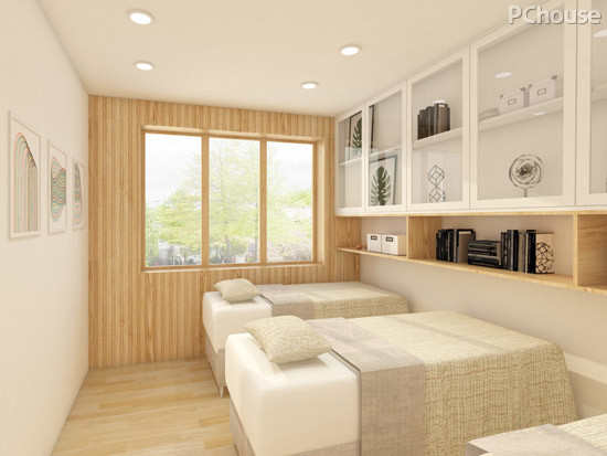 这个多功能房需要承担储物、学习、睡觉等多种功能需求,于是设计师采用了榻榻米+书桌的形式,榻榻米可以满足储物与睡眠的功能,同时还能为客厅提供一个休闲等待的角落。真正把商住两用发挥到极致。另外,选择环保的材料也是这个空间的设计重点。