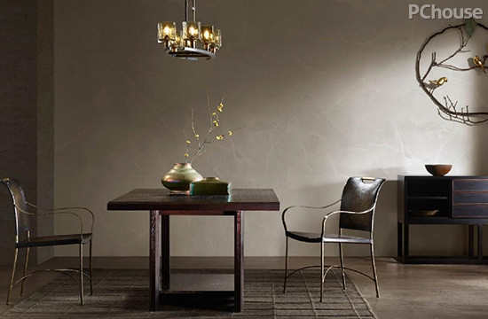 设计师通过线条、色彩以及灯光的调节达到层次与立体的效果,打造了一个简单却又通透干净的餐桌样貌,整体呈现着细腻而古朴的质感。