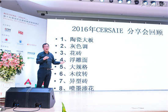 陈贤伟先生分享了他在展会上看到的关于应用空间、产品工艺、设计、工厂以及产品等不同方面的趋势,并表示从意大利陶瓷企业身上不应该只学习技术,还要学习他们的产品开发思维。