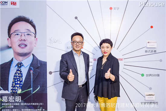 活动尾声,中国陶瓷总部营运总经理汤洁明女士和佛山市陶瓷行业协会常务副秘书长毛国中先生为五位嘉宾颁发2017趋势风尚人物奖项。