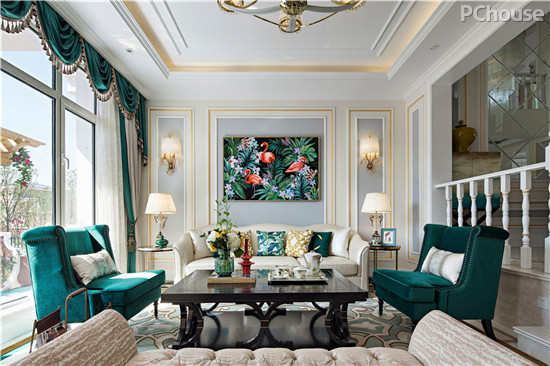 一走进客厅,硬装呈现的是标准的欧式线条设计,那么作为软装设计师,我想做的是,化繁为简,打造浪漫,把生活装进春天里。