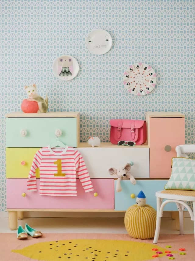 集合了衣柜和抽屉柜的组合柜令儿童房的收纳更高效,同时色彩和高度可以自由随意地的组合,无论是小时候家长使用还是不断长大的孩子自己使用,都能灵活定制。省去了突出的门把手,用镂空的设计代替,能避免孩子不小心磕碰,既美观又贴心。