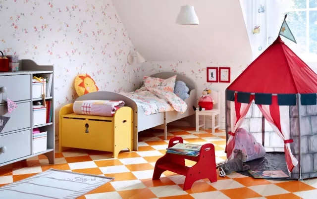 帐篷在现在的儿童房设计里非常流行,相比于床,孩子们更喜欢帐篷作为自己的小天地。充满童趣的造型和色彩开辟了一个独立的游乐空间,同时使他们经常玩的玩具和经常看的书都有了去处。