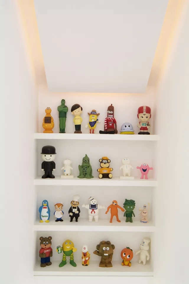 在壁龛的位置小小地的发挥灯光的作用,立刻就能在房间内收获一个玩具的展示之家。收纳较小的玩具,只要15到20厘米深的格子就能装下。面对这边墙面摆放一张轻巧的书桌,孩子在玩具朋友的陪伴下写字画画,乐趣十足。