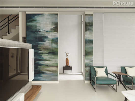 在一楼的生活场域,采用极度简约的手法,即使是天花板也不做过多的处理。干净-让它变成是一种生活态度。这时候才能用最纯粹的心,欣赏画家挥洒的。
