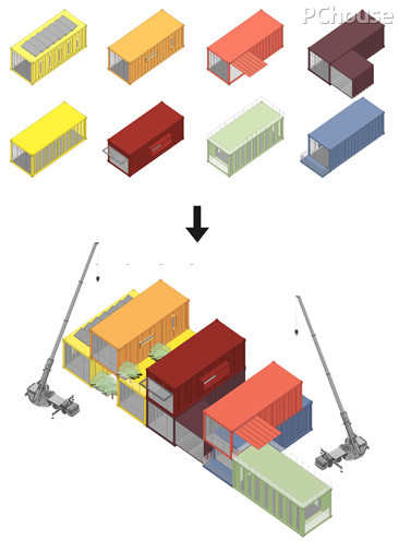 通过工业化的预制,运送构建到现场施工安装,装配可变的建筑构件。未来也可多个组合,形成多种可能性。