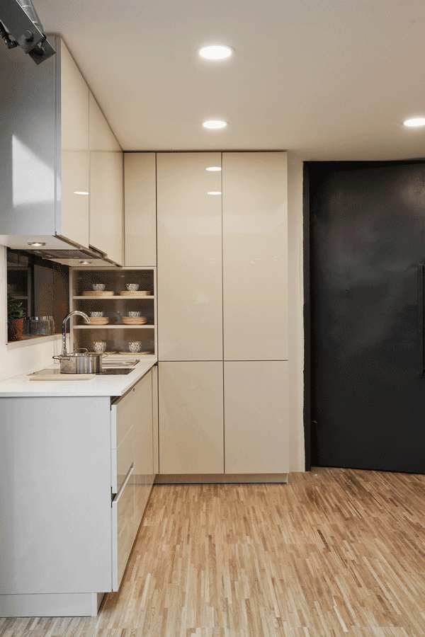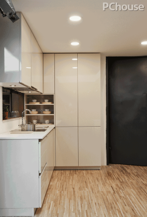 拉出的厨房桌面,将厨房变身为前厅接待。