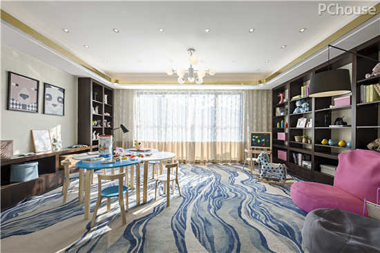 除却儿童独立的休息空间,别墅还特别设置了一个儿童游戏室。可爱的玩具、饰物随处可见,阳光透过大大的落地窗,照耀着童年的时光脚印,留驻一段纯真。