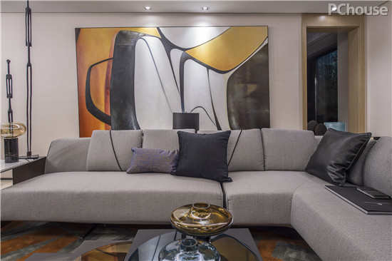 灰色的软包沙发因细腻舒适的质感将奇突的感受拉回到现实,创造超越与回归的精神历险,拒绝平白无奇,拥抱生活的随意。