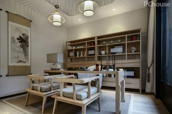 老子《道德经》:“道常无为而无不为。” 清醒睿智的哲思,在书房的设计中展现得淋漓尽致。伏案山水,思古连今,亦动亦静,皆为雅趣,令人心生宁静和谐。