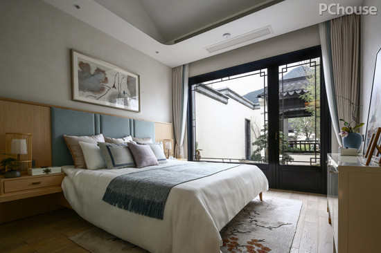 君子爱花,总爱花中之花。玉兰花高贵却不张扬,便是最佳选择。阳光透过玻璃窗洒入室内,映衬在主卧的木元素之上,晕染出温暖舒心的自然感受。