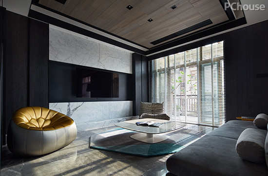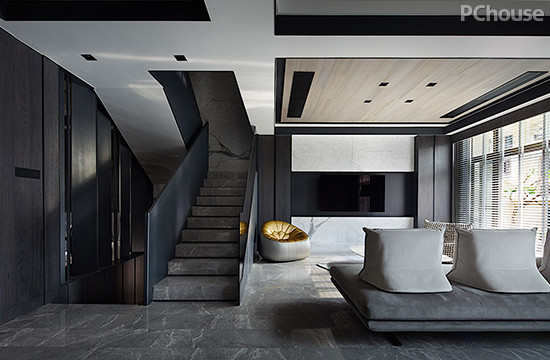 【PChouse】大面积的黑白灰难免会有些性冷谈,在设计的过程中利用了哪些元素来增添活力和暖感?