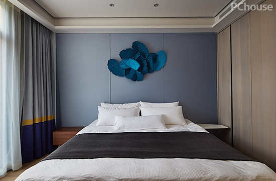 儿童房以蓝为主色调,与些许米色混合,给人柔和的触感缓解空间的沉闷,加入玛瑙蓝装饰,点缀、增添一丝跃动感。