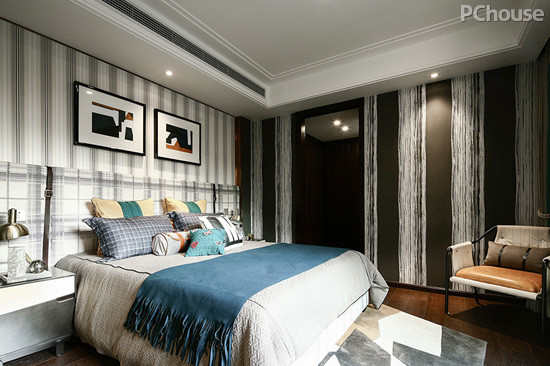 移步次卧,男孩房在宁静时光中,绅士雅痞的气质独自绽放。黄绿碰撞的色彩搭配,干净利落的家具线条,丰富空间层次的挂画,无不诉说着精致洒脱的魅力。