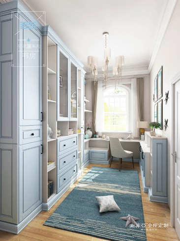 我们都习惯于感叹诗和远方,这一刻却只想拥有这一隅的书香和阳光。柔和的蓝与纯净的白,烘托出静谧舒适的空间气氛。U型的书房一体化设计,不仅最大限度地利用了空间,还增强了整体的储物功能。如此曼妙的阅读空间设计,透露着岁月静好的迷人氛围,让人安心享受惬意的阅读时光。