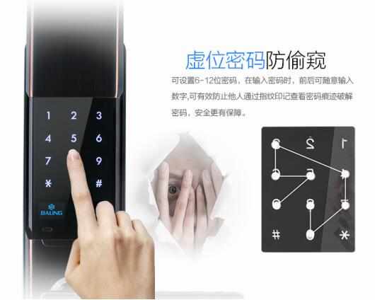 2、密码开锁:现在智能锁密码解锁方式一般支持随机码+密码方式,也即是乱码功能。做到防偷窥偷窃,防止路过的人员看到你输入的数字。
