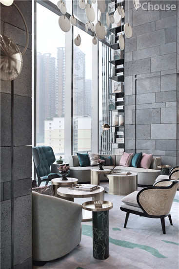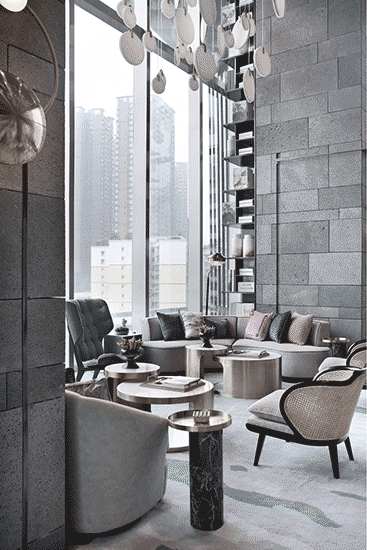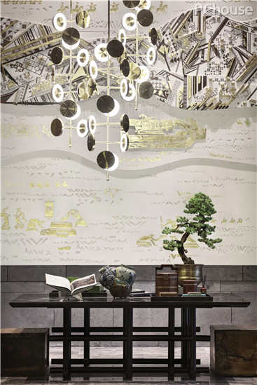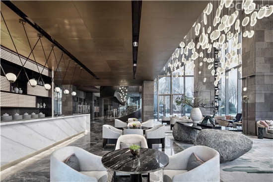 “山水城市”的主题,力求突破材质和形式的局限,在时代语境下思考东方意境的抽象表达,重构一个符合国际与当下审美的东方空间。