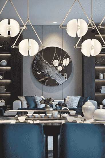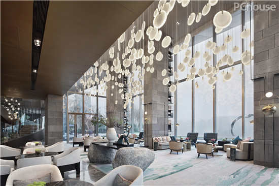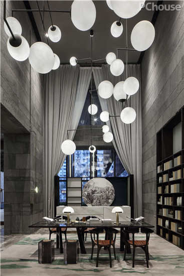 在灯具使用上,设计师则不拘泥于传统,将东方人对造型和空间的理解扩延,通过重新堆叠、排布、组合,由山、石、云、风、月等自然意象所赋予的灵感中构建出心中的一隅自在山水。