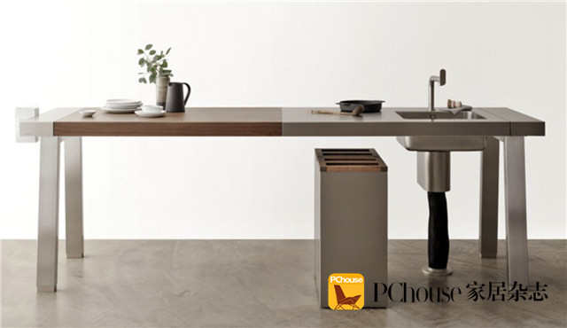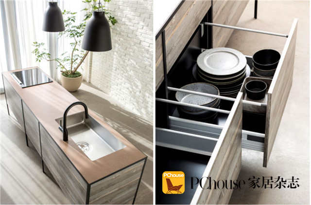 这一季还有一些关于极简的启发,东西多如何做到“简”?其实首先是要规整起来,比如工具和材料必须保持整洁,排列好。当细节摆放合理之后,将厨房的主体分为三个部分:厨房工具柜、工作台和厨房电器柜。让整体空间看起来一目了然。