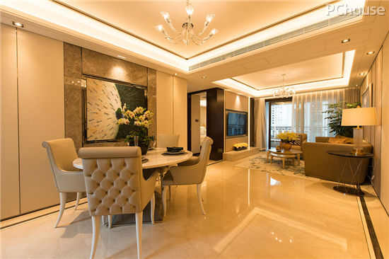 灯光带来光明,也温暖心灵,让暖暖的灯光洋溢在家中的每个角落,再冰冷的材质都会折射出温柔的光芒。明亮的黄色光线则能给人视野开阔、充满热量的感觉。