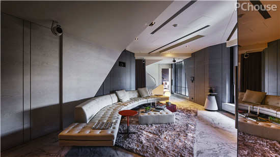 二楼以较具现代感的折线线条,勾勒出新世纪现代风格。空间主色调亦不同于一楼,赋予轻雅、明亮的色彩,并以天然木皮及柔软布面等元素做铺陈,营造出温馨、舒适的居家氛围。二楼主要为私领域空间,为让家人有更紧密的互动关系,特别设计起居室作为缓冲空间,利用直线及折线线条从起居室延伸至卧房,不仅巧妙地形构出完整流畅的动线,同时给予空间更显纵深的纾展之感。