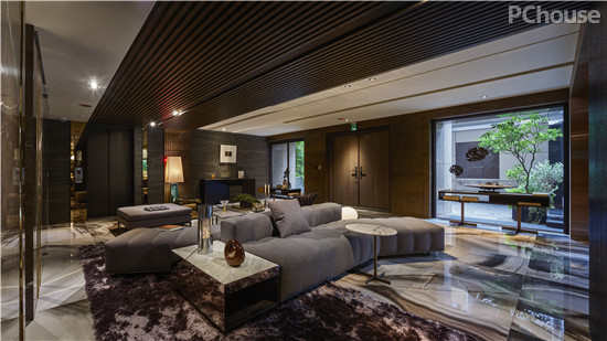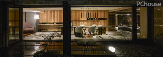 多功能会议厅采用大面开窗与摺窗的设计,使外在景观渗透室内,打造一个室外零界线空间,彼此呼应,让住户能轻松自在地沉浸于自然景观、享受阳光的沐浴;室内空间利用概念性景观的设计与室外做呼应,于墙面注入了古典语汇的弧线线条,淡淡地散发奢华之感;家具、灯饰的材质上用了很多不同手法,让自然与奢华能够表现性的融合新生。