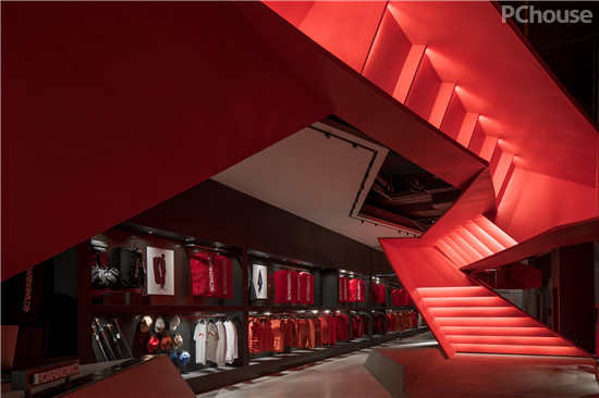 东仓新作:凌厉的一点红 200平潮牌购物空间设计