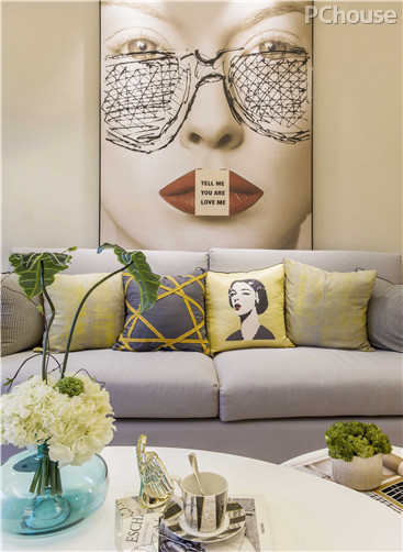 沙发、茶几、餐桌等家具多为量身定制,墙面造型简约,现代装饰挂画醒目而不呆板,充分烘托其他元素。